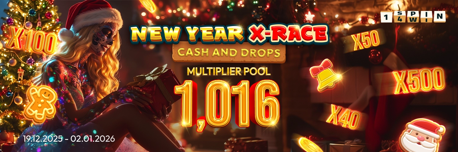 The “New Year X-Race. Cash & Drops” by 1spin4win Network Promotion will be active from 08:00 UTC on the 19th of December, 2025, and will conclude at 08:00 UTC on the 2nd of January, 2026.